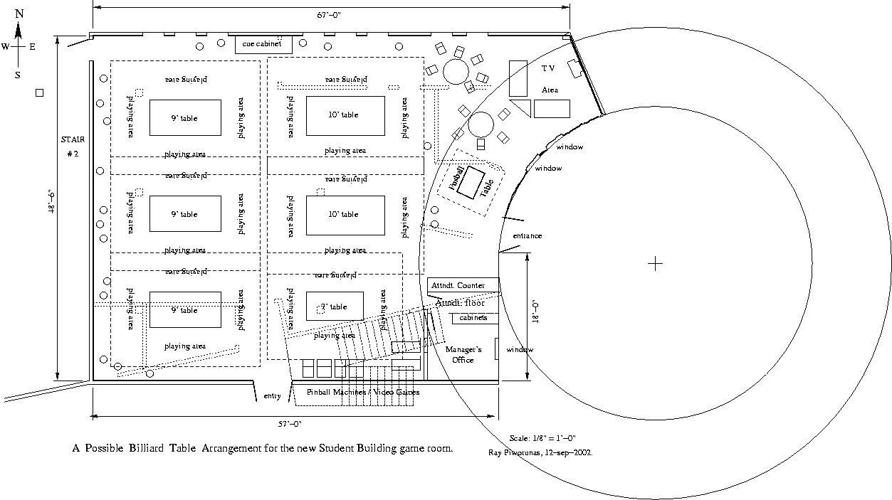 - one modern 10' carom table (Gabriels "Imperator" preferred).